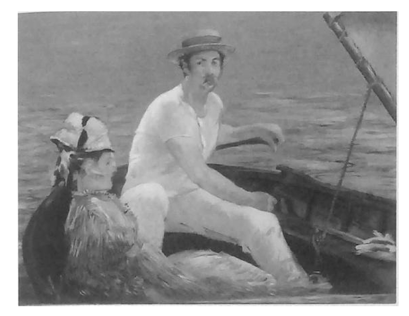 Degas, che era anche fotografo, porta queste logiche nella pittura: sfocature, tagli, frammentazioni. E lo stesso fa Manet, suscitando scandalo, quando taglia lo scafo di una barca in In barca ad Argenteuil. Qui Falcinelli introduce anche il meccanismo del repoussoir: elementi in primo piano che incorniciano e spingono lo sguardo.
