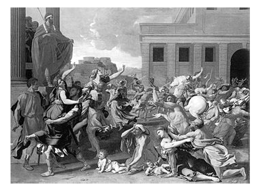 Il Ratto delle Sabine di Nicolas Poussin è esemplare in questo senso. Anche qui ci sono molti corpi, come in Michelangelo, ma la differenza è nella regia: le figure non sono solo presenti, sono disposte. Poussin costruisce la scena utilizzando modelli tridimensionali, decide la posizione dei personaggi, organizza il movimento. Non si limita a rappresentare, ma mette in scena.