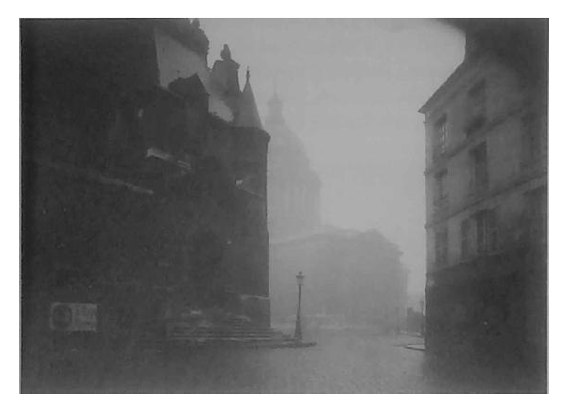 Le fotografie di Eugène Atget lo mostrano molto chiaramente: edifici che stringono l’inquadratura ai lati e aprono verso un fondo rarefatto. L’effetto è quasi teatrale, o — come suggerisce Benjamin — quello di una scena del delitto: qualcosa è già successo, e noi siamo chiamati a entrarci.